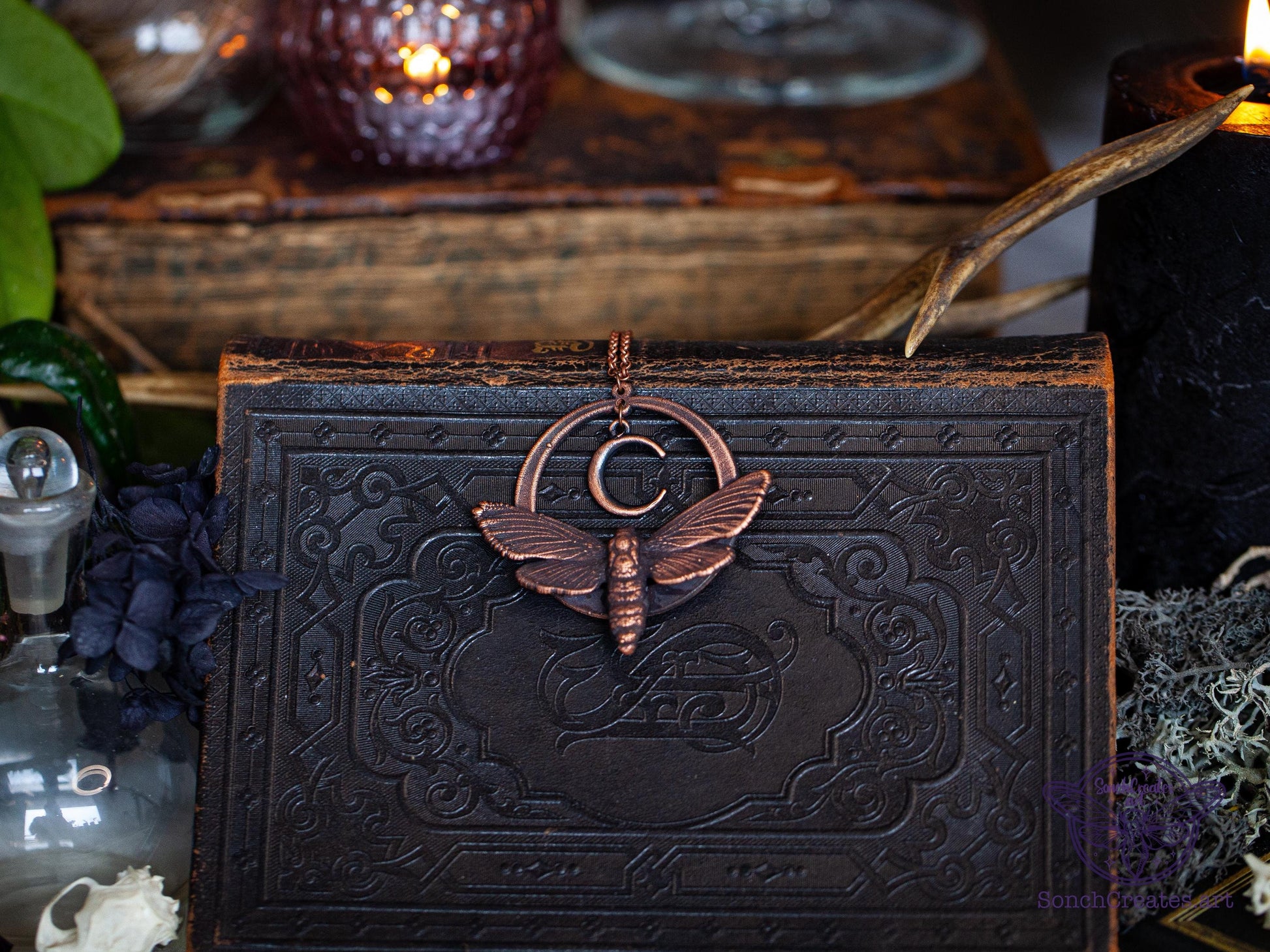 Celestial Moth - Crescent moon pendant, , electroformed copper witch pagan jewellery, nature inspired, night butterfly, insect taxidermy